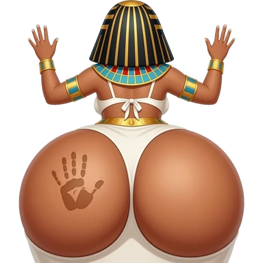 A extremely fat big booty egyptian showing back her buttocks with putting her hands behind the wall with a hand print on her left buttock emoji