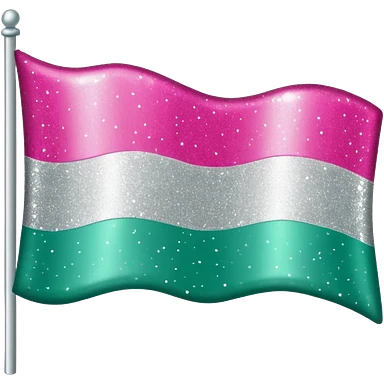 a tricolor flag featuring horizontal stripes of hot pink, glitter silver, and jade green. emoji