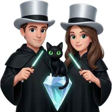 magician couple and their pet cat emoji