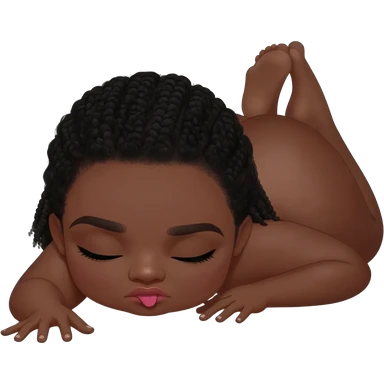 Its flip the girl on her stomach to where her hand is on the flow and cheeks up in the air she is facing front view but her but is big so is show front behind and she is biting her lips, make her skin black emoji