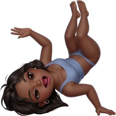 Its flip the girl on her stomach to where her hand is on the flow and cheeks up in the air she is facing front view but her but is big so is show front behind and she is biting her lips, make her skin black, turn her whole body facing front so only her face and butt is showimg emoji