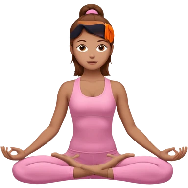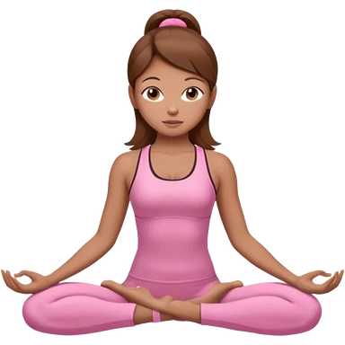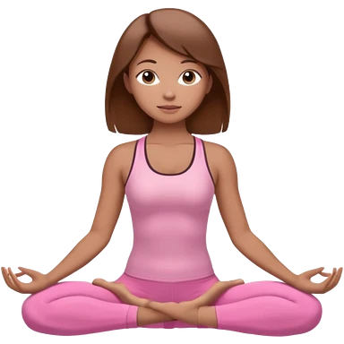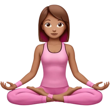 Generate a girl in a yoga pose. She is wearing a pink suit and has brown hair. emoji