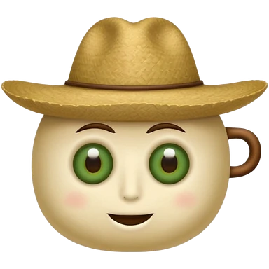 me puedes hacer un grano de café antropomorfo con bigote y sombrero emoji