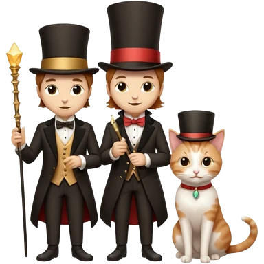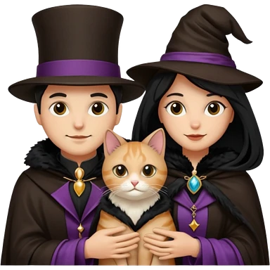 magician couple and their pet cat emoji
