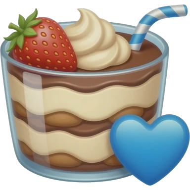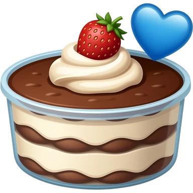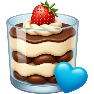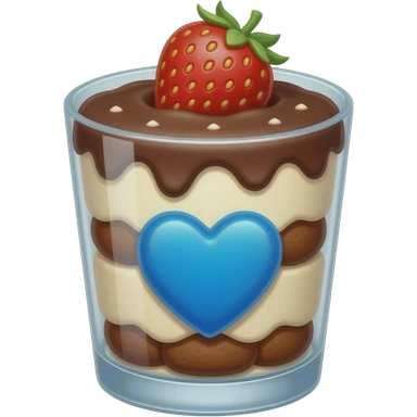 basic cocoa tiramisu with a strawberry and with 🩵 emoji