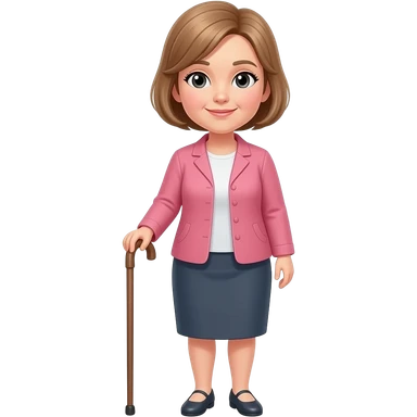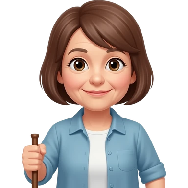 Show me a fulllength middle aged woman with short light brown hair using a walking stick emoji