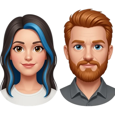 brown eye lady blue streaks in long hair and red hair man grey beard emoji