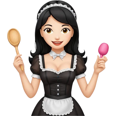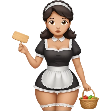Sexy Latina maid showing off her fat ass and body in some sexy maid lingerie give her black hair and a sex toy in her hand emoji