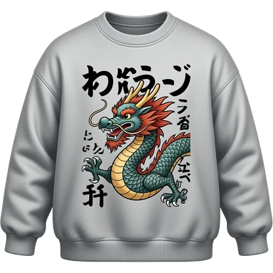 Oversized pullover with Japanese writing and Japanese dragon design emoji