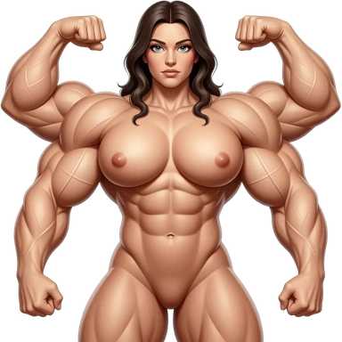 gigantic nude, naked female huge breasts female bodybuilder with massively developed muscles emoji