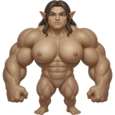 gigantic goblin nude, naked female huge breasts female bodybuilder with massively developed muscles emoji