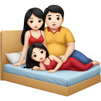 long black hair asian girl having sex with fat and short asian man on the bed emoji