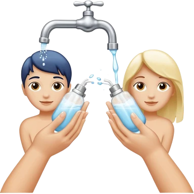 Deux mains sous un robinet avec des gouttes d'eau et du savon emoji