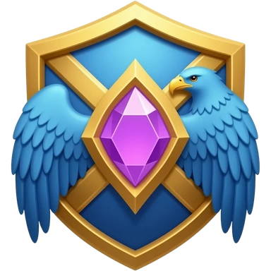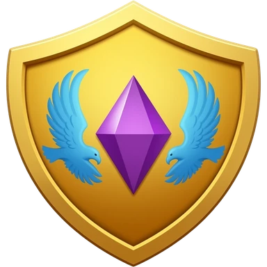 Golden shield, purple crystal, blue eagles, fantasy emoji, clean, vibrant, Discord style emoji