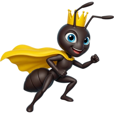 Ant with yellow crown doing superhero pose emoji