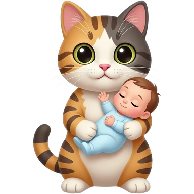 Emoji cat holding a baby emoji