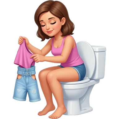 Woman takes off her clothes on toilet emoji