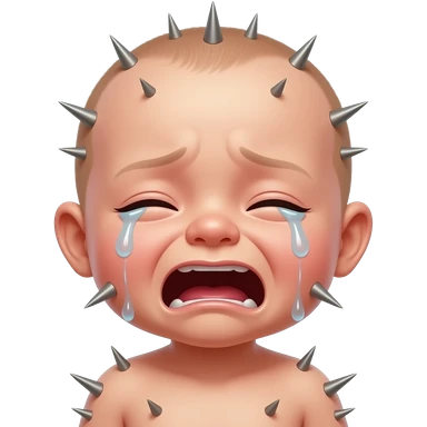 human baby with toenails all over skin, covered in toenails, crying out toenails emoji