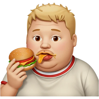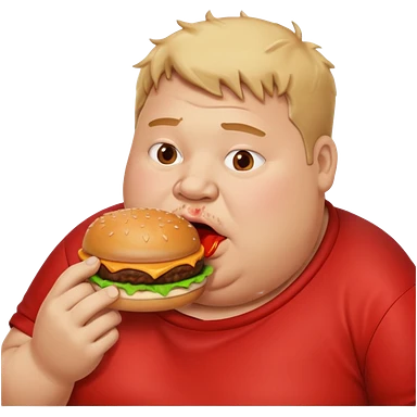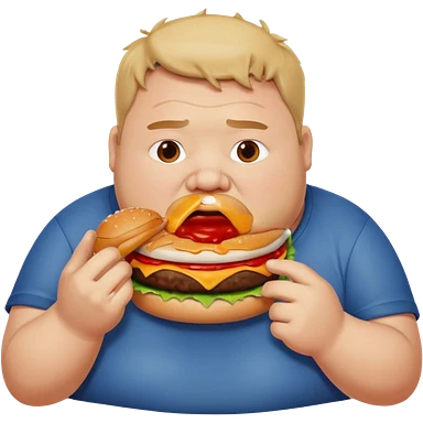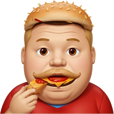 A fat guy eating a burger with ketchup all over his mouth emoji