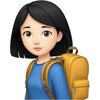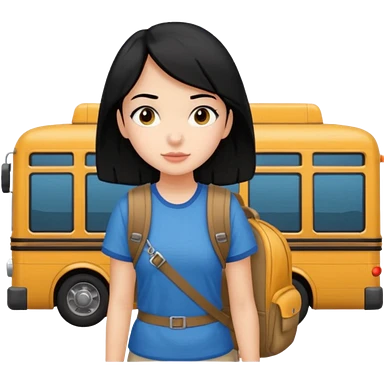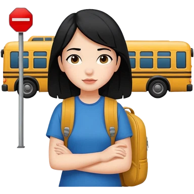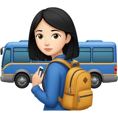 girl with black hair leaving home waiting for bus emoji