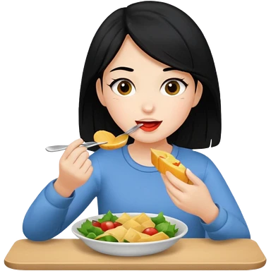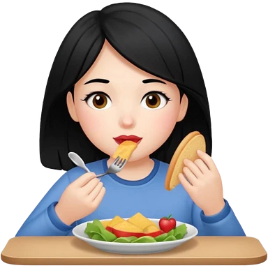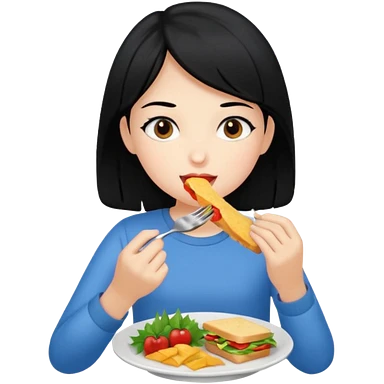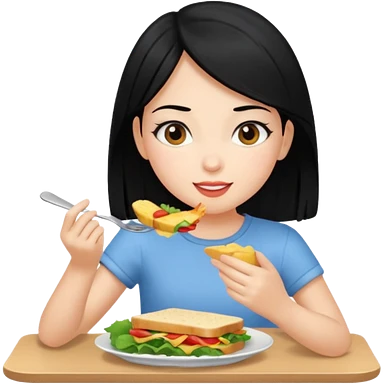 girl with black hair eating lunch emoji
