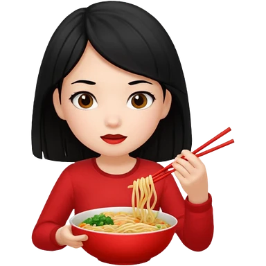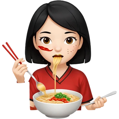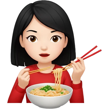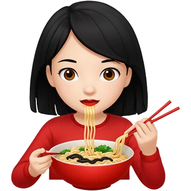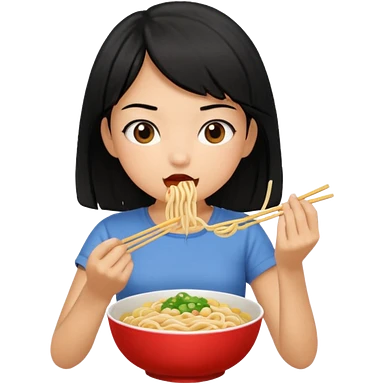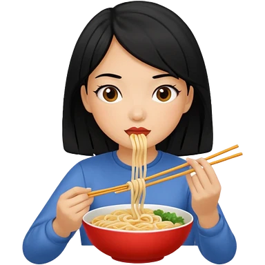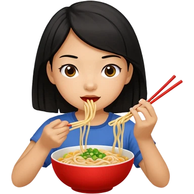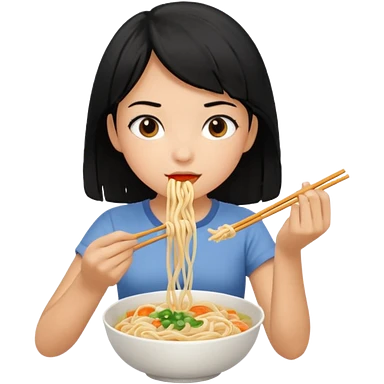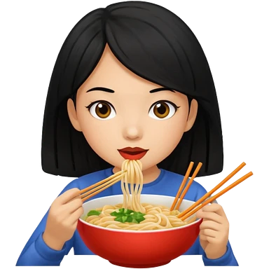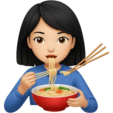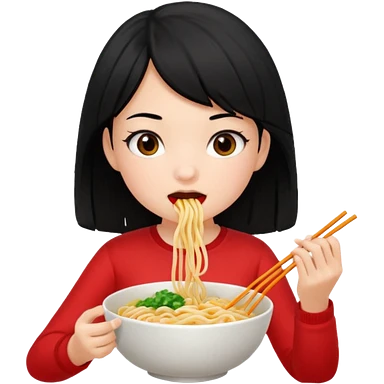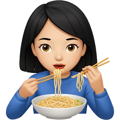 girl with black hair eating noodles emoji