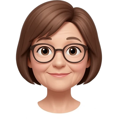 grand mere cheveux court, chatains, avec lunette, peau blanche emoji