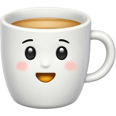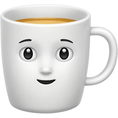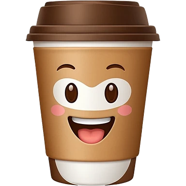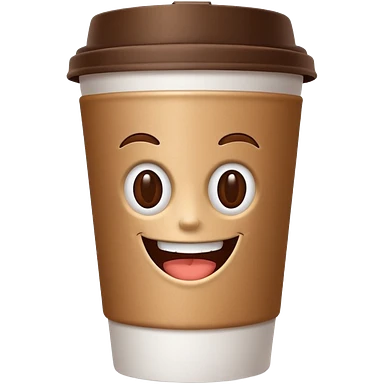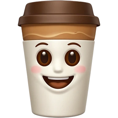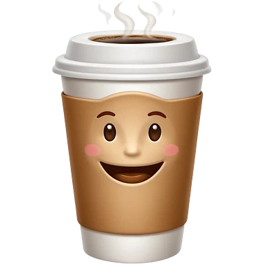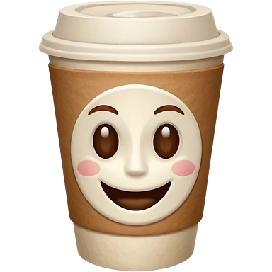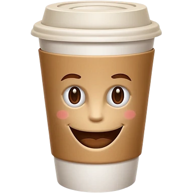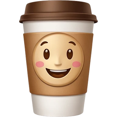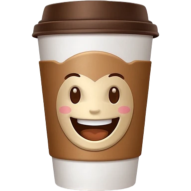 one all white coffee take away cup with coffee, no lid, and a small brown smiling mouth in the middle front. No eyes, no cheeks, no nose, only a small smiling mouth emoji