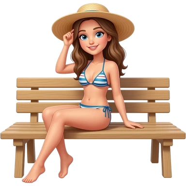 A bikini girl sitting on a beach bench and tanning emoji