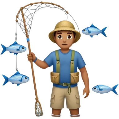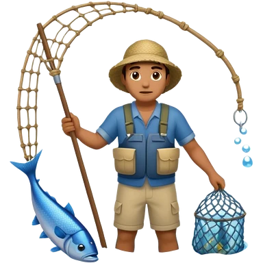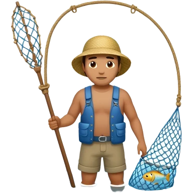 a Polynesian fisherman standing in the water with a large net full of fish emoji