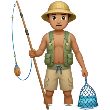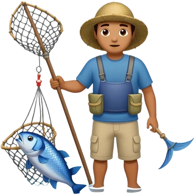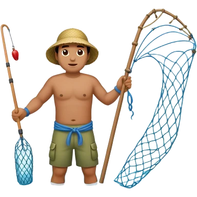 A Polynesian fisherman standing in the water with a net full of fish. The fisherman has empty hands and is standing in the water. emoji