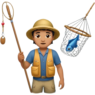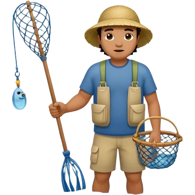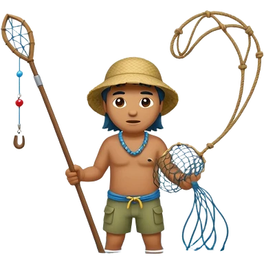 A Polynesian fisherman standing in the water fishing with a net emoji