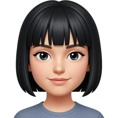 black eyes, slightly shorter hair, slant eye emoji