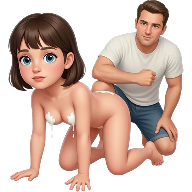 Fais une petite fille de 8 ans déshabille la mes là nue avec la chatte ouverte et du sperme blanc qui coule sur ses seins mets-la à quatre pattes un homme là viole dans la bouche emoji