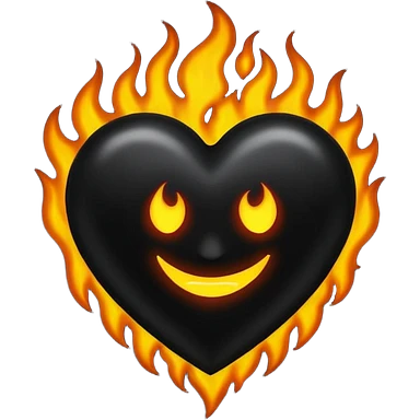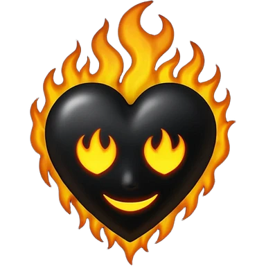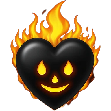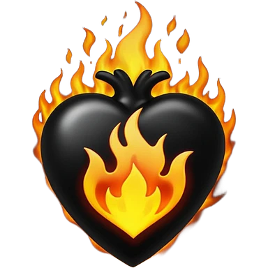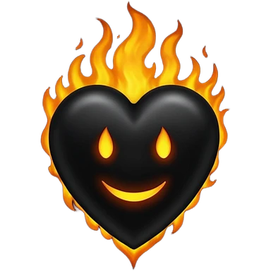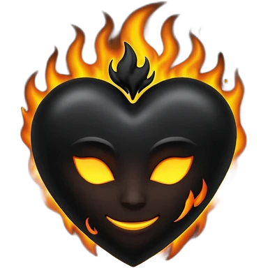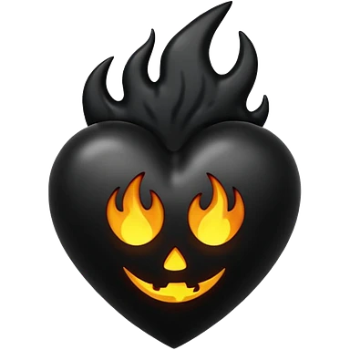 A dark black heart with glowing black flames rising smoothly, giving a mysterious and powerful feel. Transparent background, simple emoji style with a dramatic touch. emoji