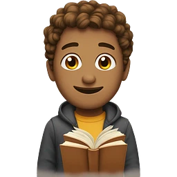 A White girl with curly medium length black hair and glasses holding a Yorkie emoji
