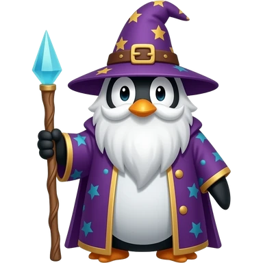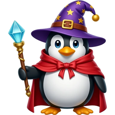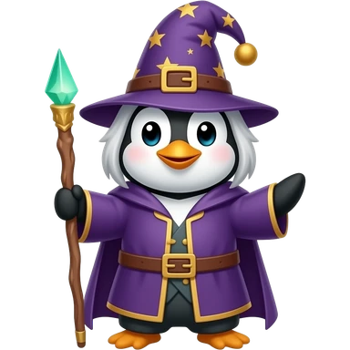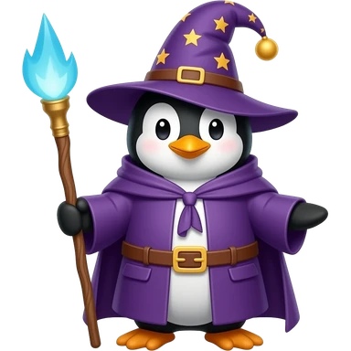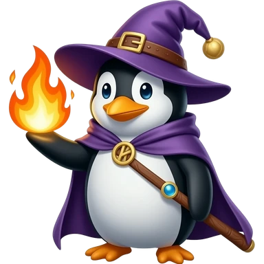 penguin fire wizard, fire elements red eyes, staff with firey red gem, black and red outfit emoji