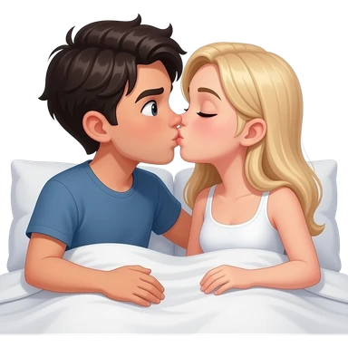 que el chico sea blanco y pelo morocho besandose muy fuerte en la cama com una chica rubia blanca emoji