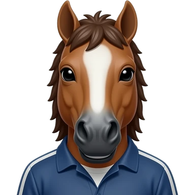 una persona con una mascara de caballo y que se vea mas la cara y sea mas realista emoji
