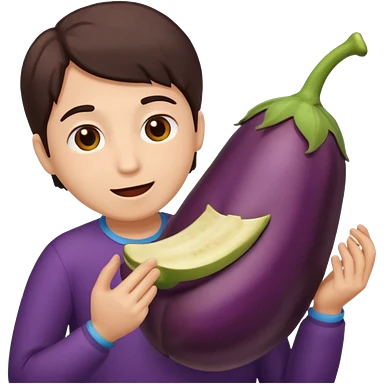 A person eating an eggplant emoji