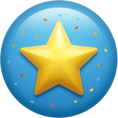 Create a compact celebratory emoji: gold star bursting out of a blue circle with tiny confetti, centered composition, clean lines, readable emoji