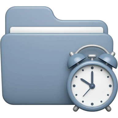 Create a minimal custom emoji for ‘waiting on approval’: a sleepy folder with a tiny clock, muted blue-gray palette, simple rounded shapes, no background. emoji
