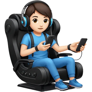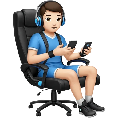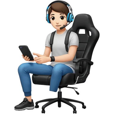 Persona con una silla Gamer auricular Gamer y control de videojuegos emoji