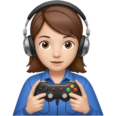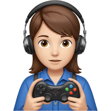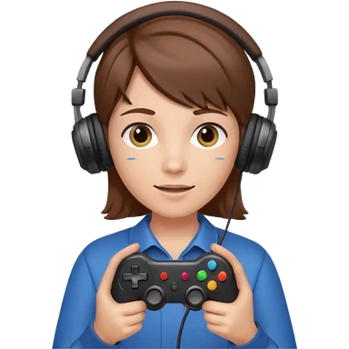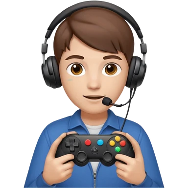 Una persona mirando al frente con un control de videojuegos y unos auriculares Gamer con micrófono emoji
