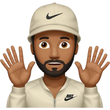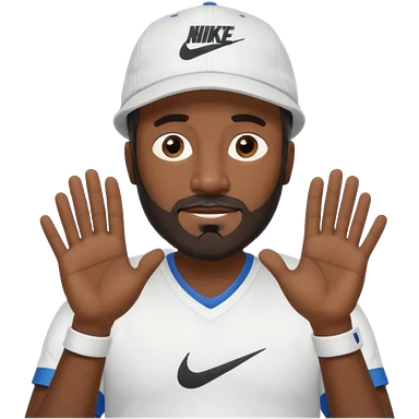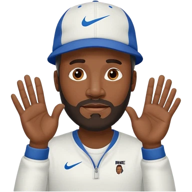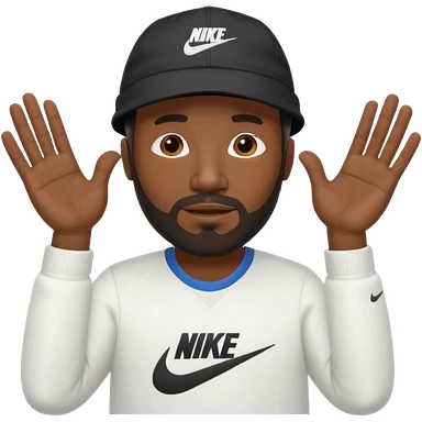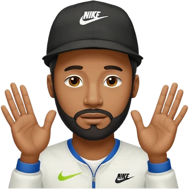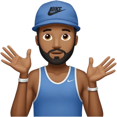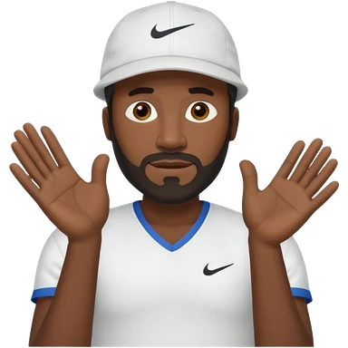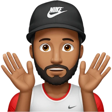 BLACK MAN WITH LOW CUT BEARD AND A NIKE HAT SAYING WHO CARES?! MOTIONING HANDS emoji
