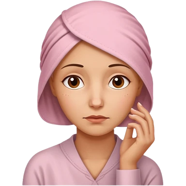 I want an emoji of a woman with cancer, the expression must be that of someone thinking, with their hand touching their chin. emoji