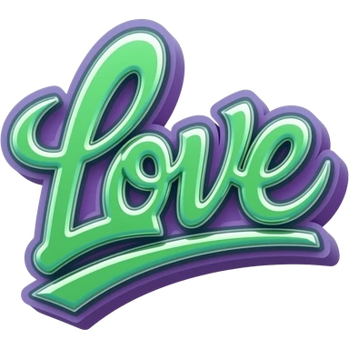 Graffity green and purple metálico y 3D al estilo Cyber neon write "Love" png background with hrome effect and gyperrealistic emoji