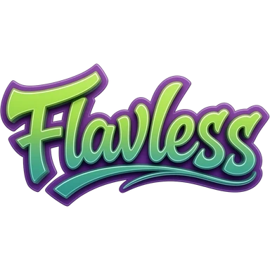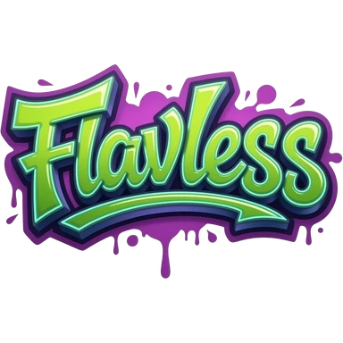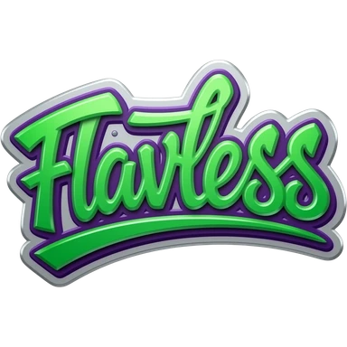 Graffity green and purple metálico y 3D al estilo Cyber neon write "Flavless" png background with hrome effect and gyperrealistic emoji