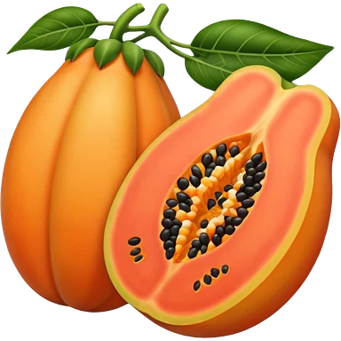 Starting from the current papaya emojis, use the second one as baseline. Modify the emoji slightly to make use of a flamlet to approximate the shape and color of the papaya emoji