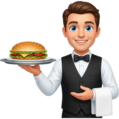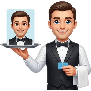 Garson emojisi elinde tepsi ve yaka kartı olsun emoji